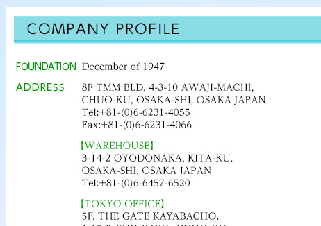 TOP PAGE RAW MATERIALS RETAIL PRODUCT COMPANY PROFILE CONTACT US