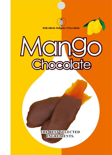 Is there the method to eat dry mangos more deliciously? Mr.Goto from Fujinoya International Food Consultant who introduced dry mangos made in Cebu,Philippines to Japan developed dry mangos covered with chocolate for the first time in Japan. He selected Belcolade's milk chocolate from many kind of chocolate to fit in soft dry mangos made in Cebu better. Enjoy combination of acidity of mangos and rich milk chocolate.